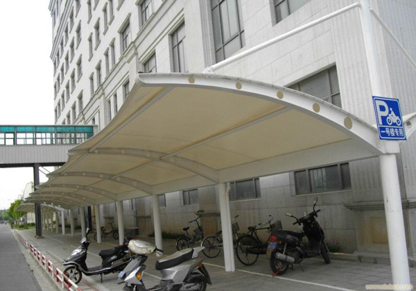 膜结构汽车棚(电动车棚),具有良好的受力特点——成为大跨度空间结构的主要形式之一。停车场的规划和建设成为现代城市规划的重要组成部分,变的越来越重要。膜结构轻巧、别致的造型在停车场及候车厅的建设中担当了重要角色,除了满足防风雨、防日晒等基本功能外,并有较好的标识招揽效果,展现了人们个性化的一面。