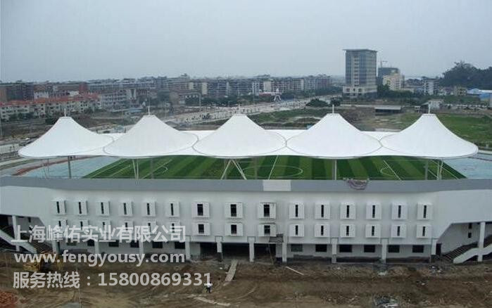 膜结构体育看台(体育馆设施)对室外场馆及体育馆顶的膜结构设计,材料是用于膜结构建筑中的膜材是一种具有强度,柔韧性好的薄膜材料,是由纤维编织成织物基材,在其基材两面以树脂为涂层材所加工固定而成的材料,中心的织物基材分为聚酯纤维及玻璃纤维,而作为涂层材使用的树脂有聚氯乙烯树脂(PVC),硅酮(silicon)及聚四氟乙烯树脂(PTFE),在力学上织物基材及涂层材分别具有影响下列的功能性质。织物基材——抗拉强度,抗撕裂强度,耐热性,耐久性,防火性。涂层材——耐候性,防污性,加工性,耐水性,耐品,透光性。